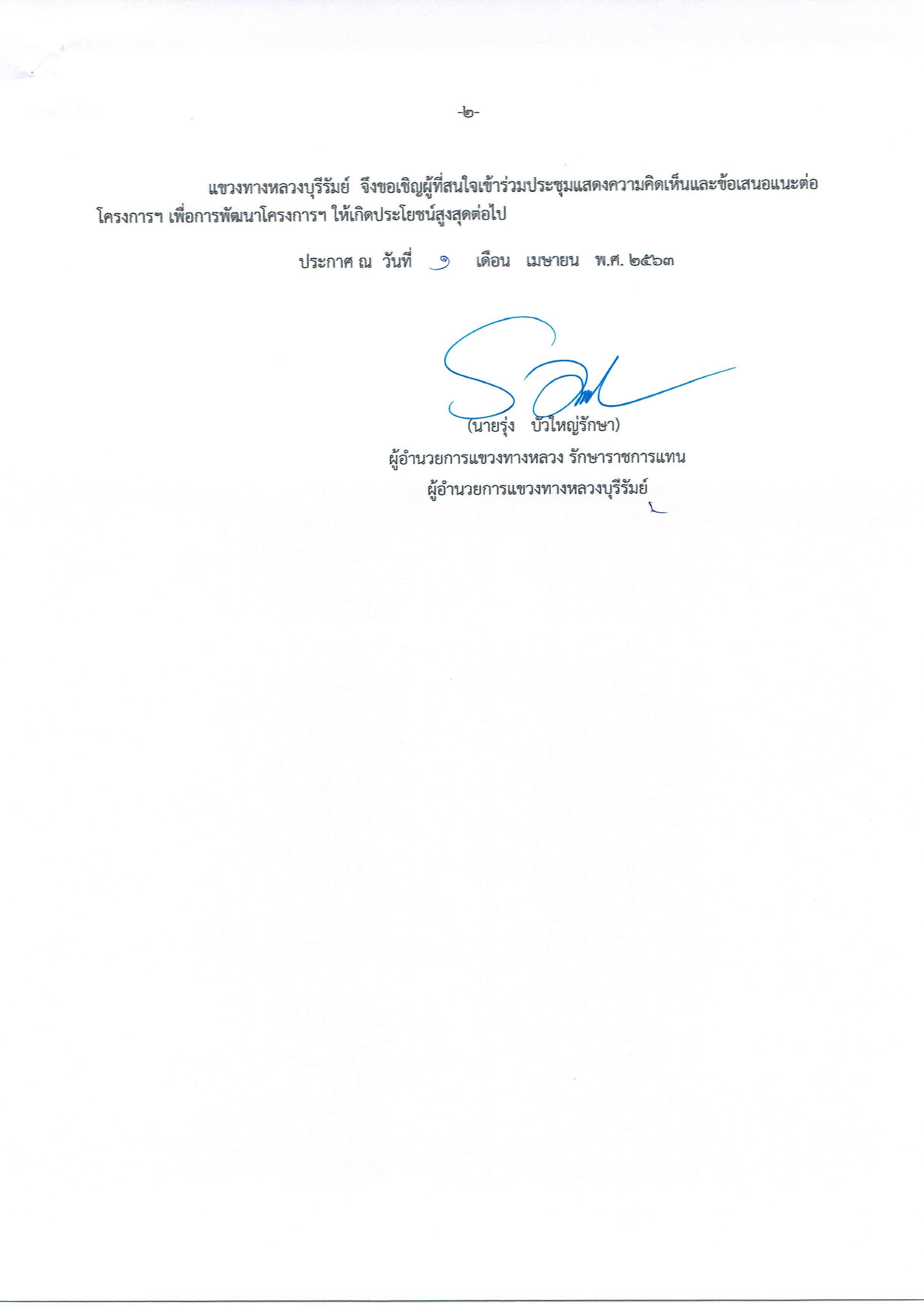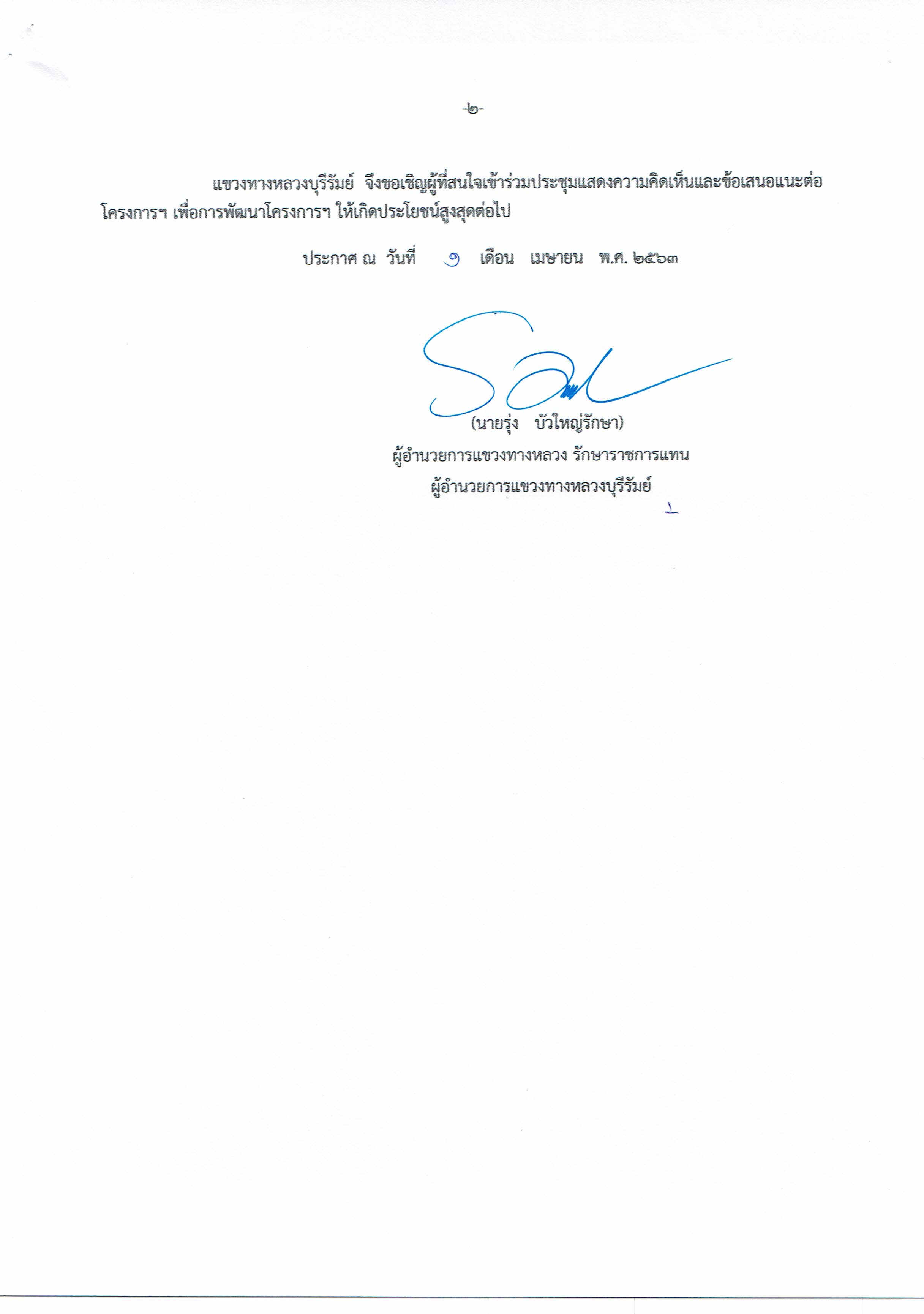 การประชุมการมีส่วนร่วมของประชาชน กิจกรรมปรับปรุงทางหลวงผ่านย่านชุมชน ทางหลวงหมายเลข ๒๐๗๔ ตอน ลำน้ำมูล - พุทไธสง ระหว่าง กม.๕๔+๙๒๕ - กม.๕๕+๗๐๐ รวมระยะทาง ๐.๗๗๕ กิโลเมตร