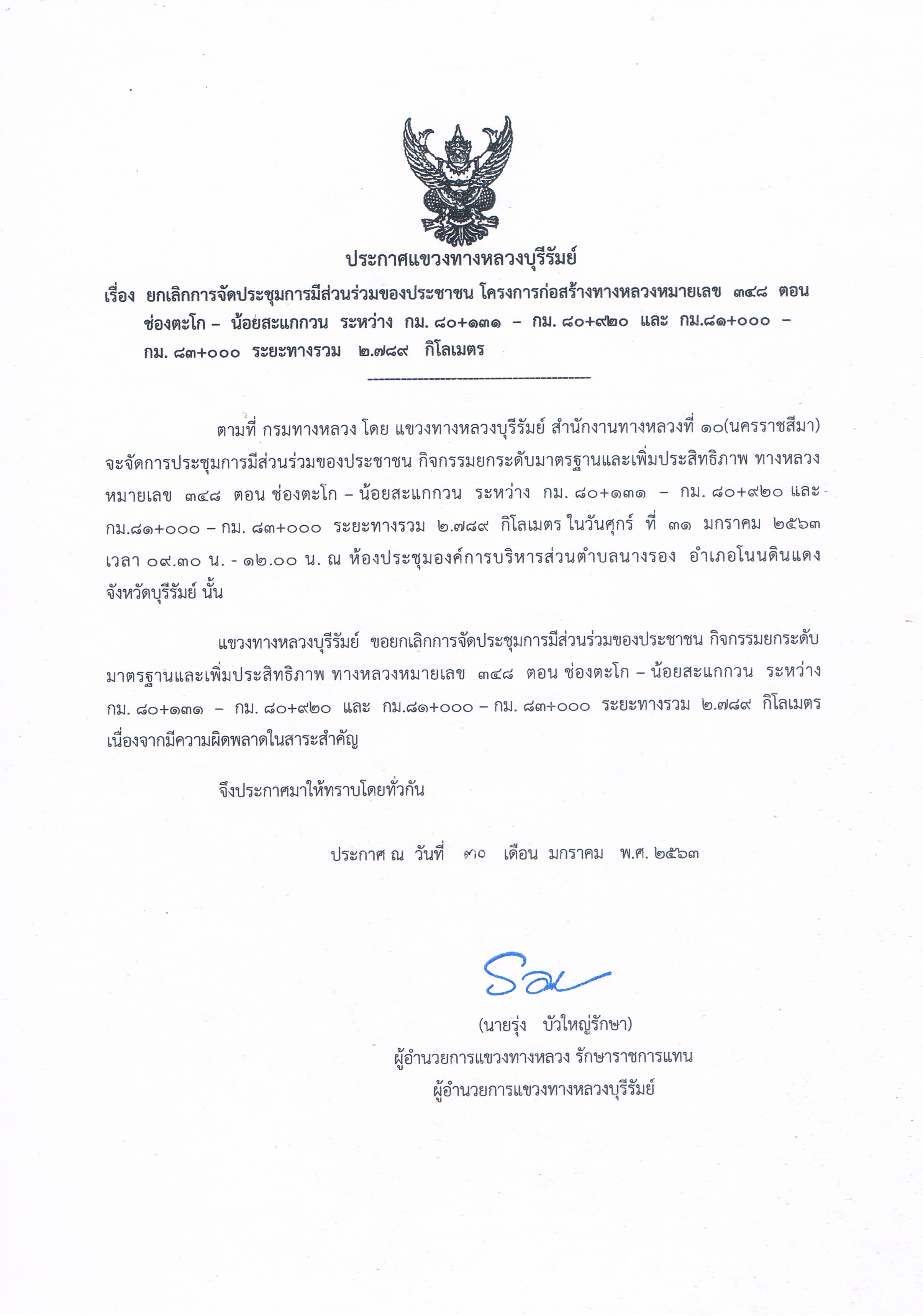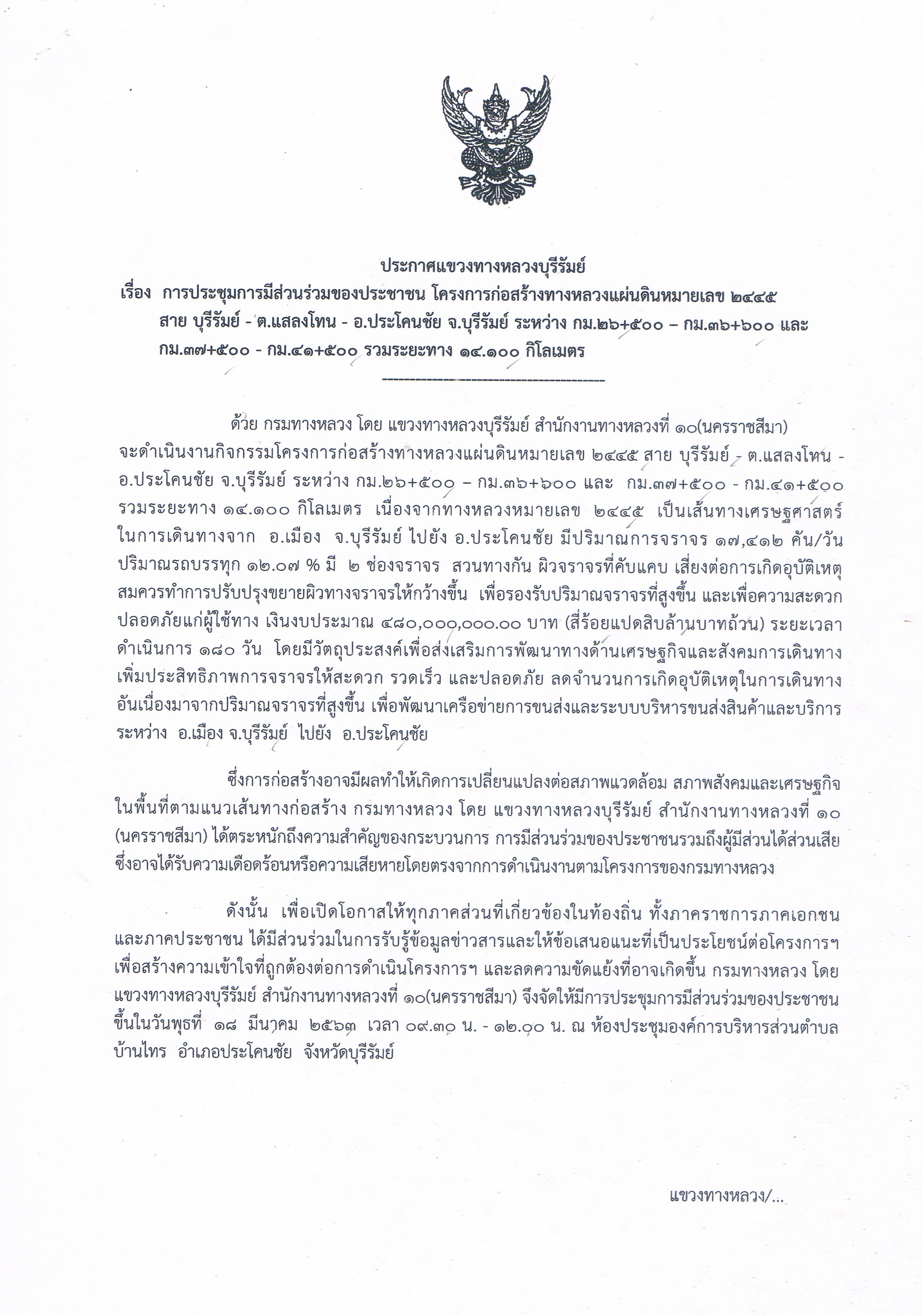 ประกาศแขวงทางหลวงบุรีรัมย์