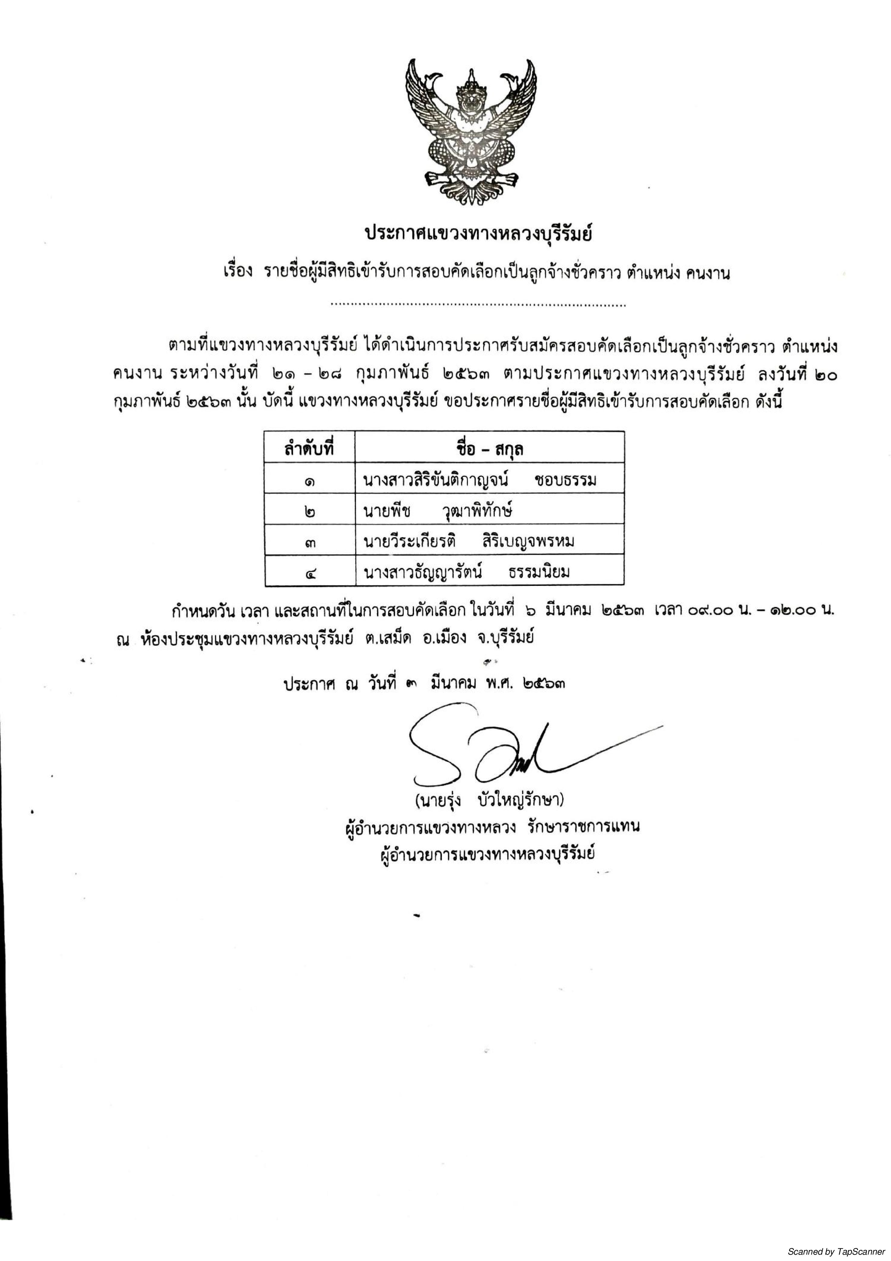 ประกาศรายชื่อผู้มีสิทธิเข้ารับการสอบคัดเลือกเป็นลูกจ้างชั่วคราว ตำแหน่ง คนงาน