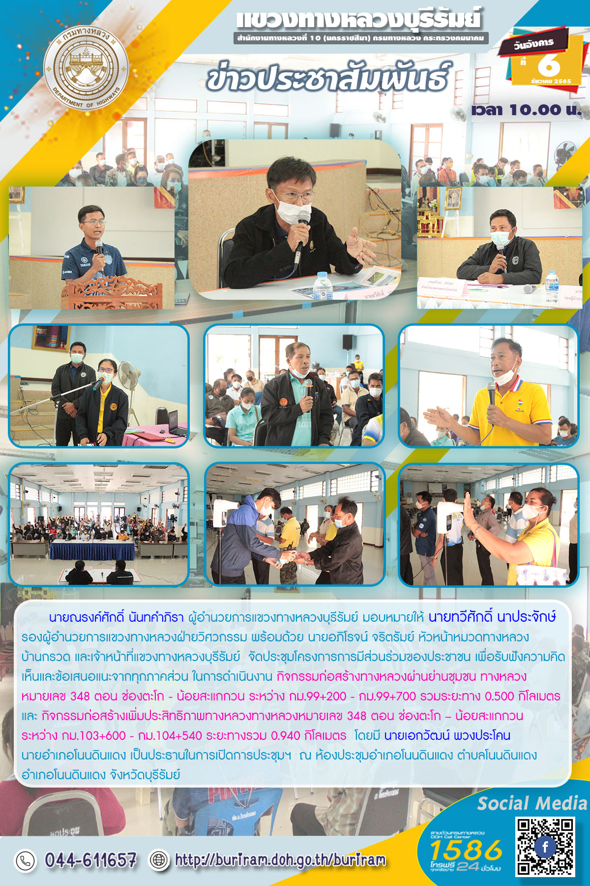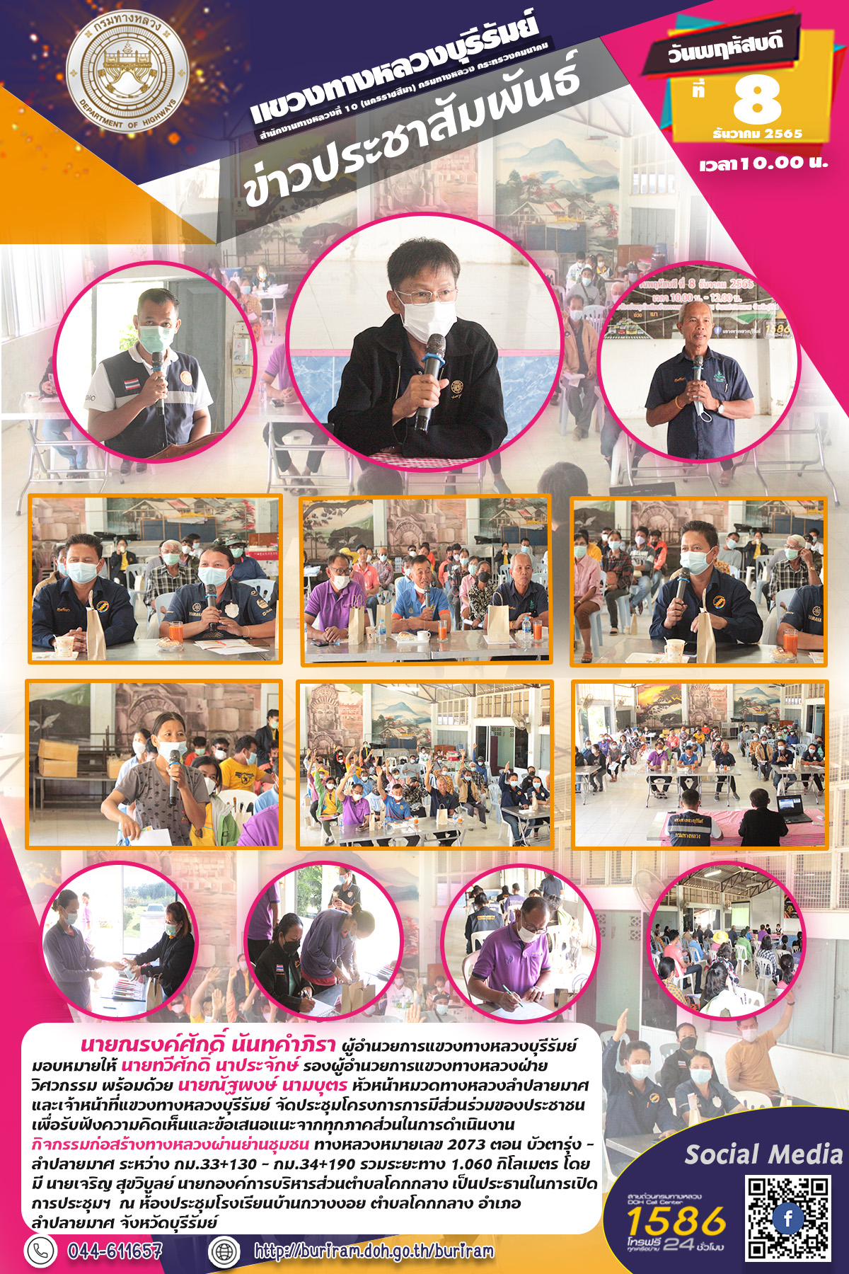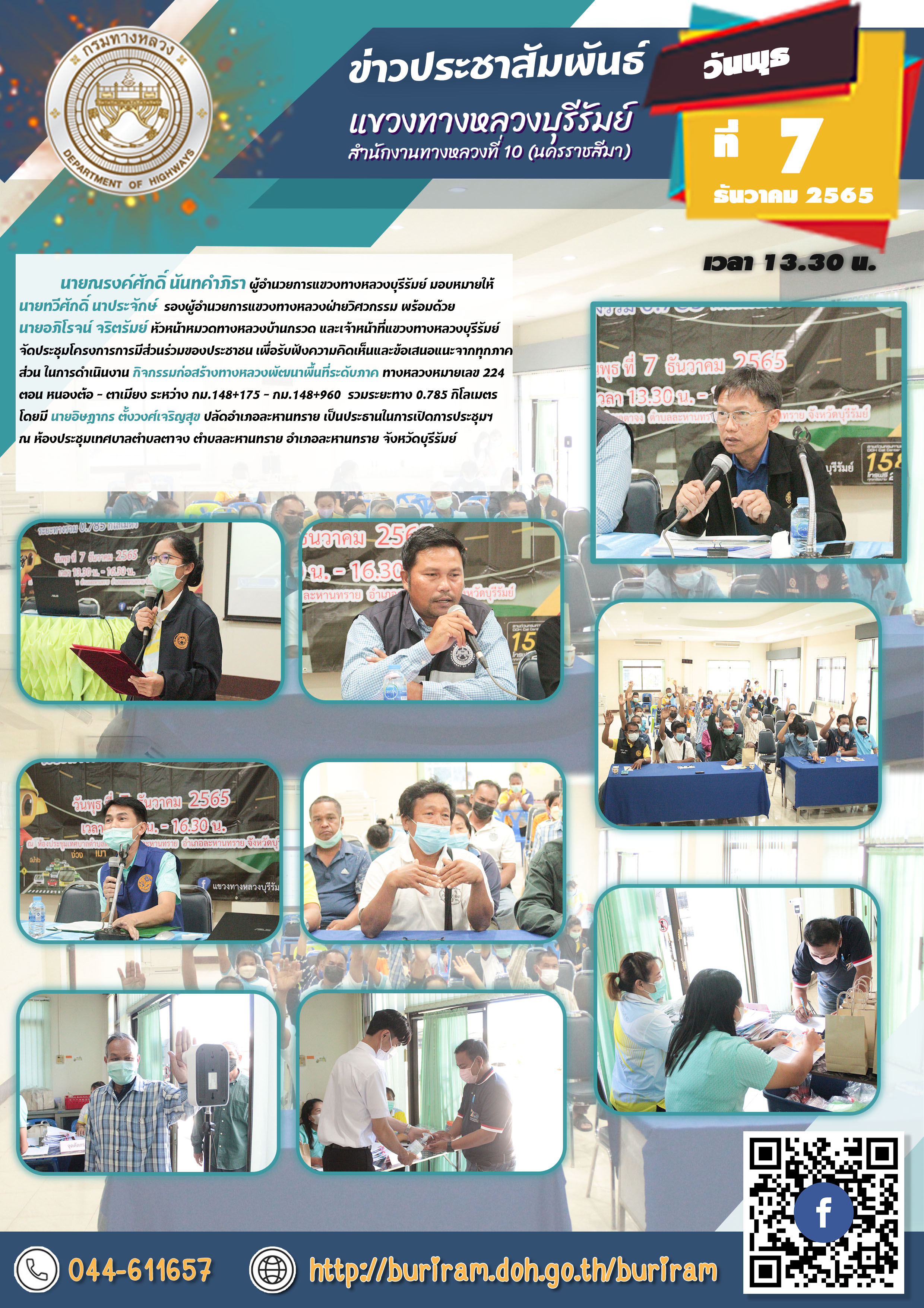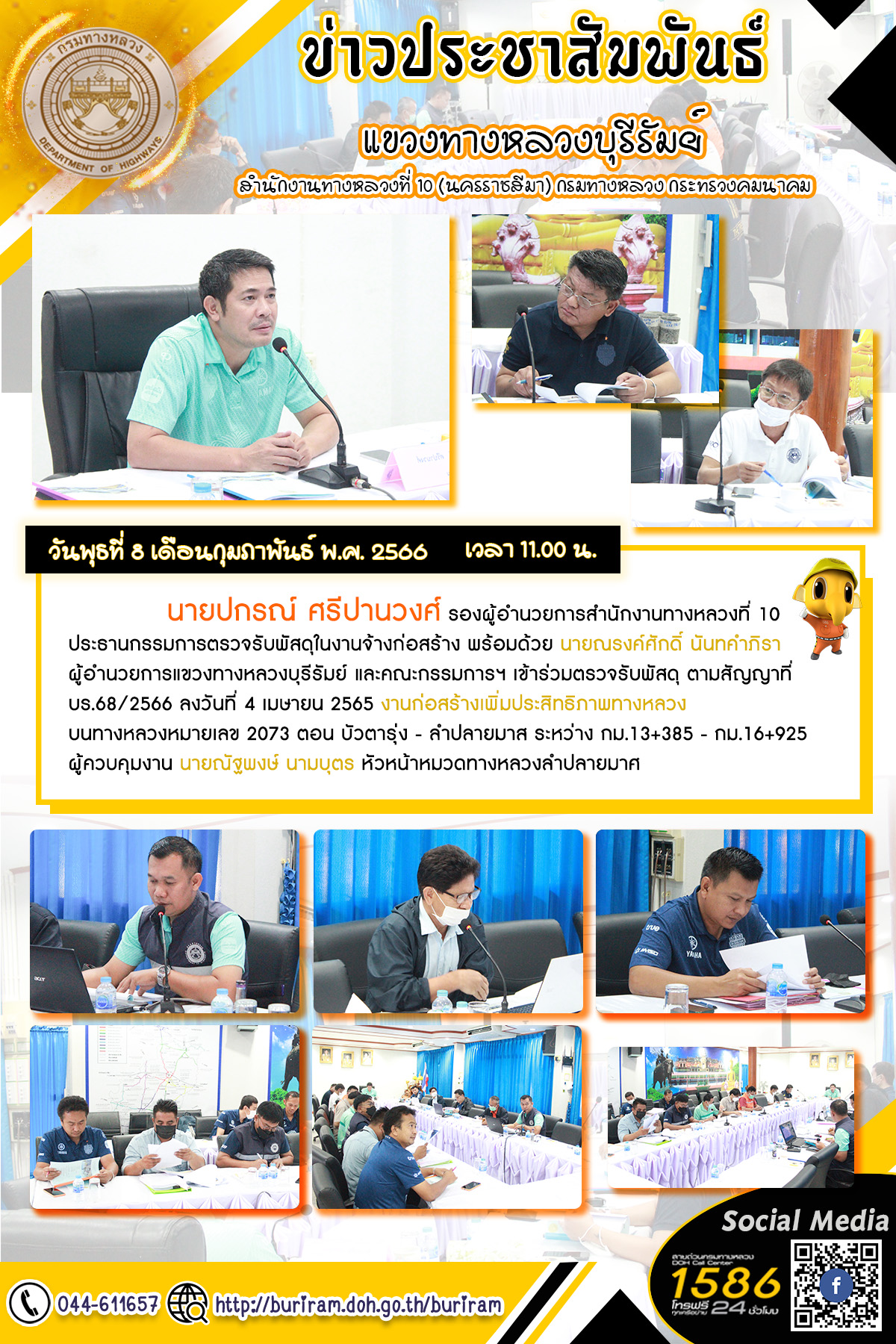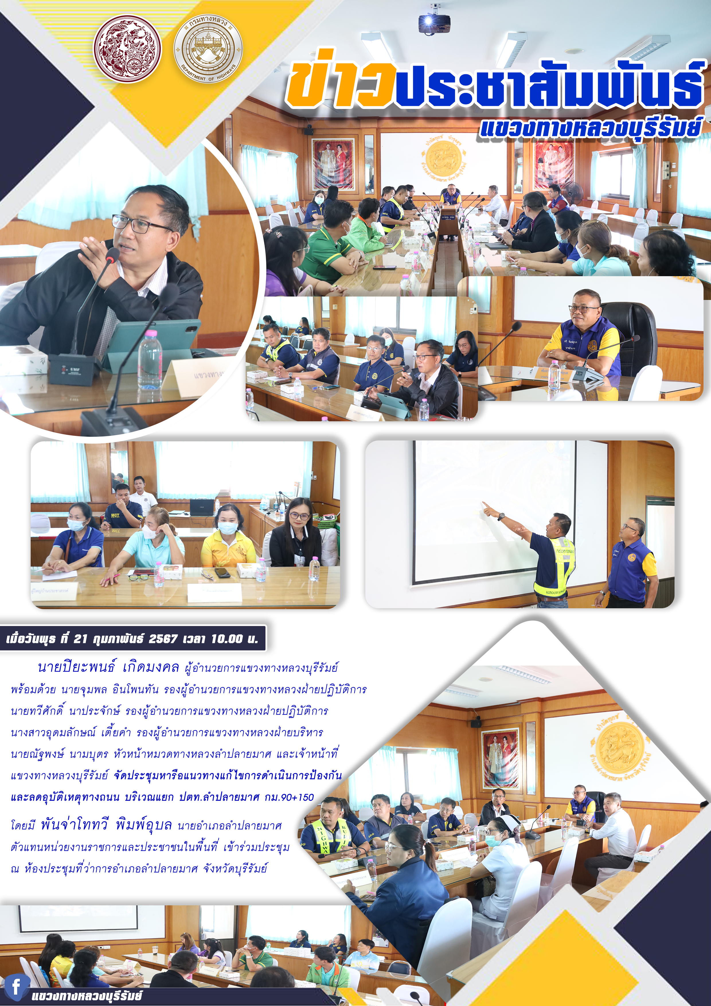จัดประชุมหารือแนวทางแก้ไขการดำเนินการป้องกัน และลดอุบัติเหตุทางถนน บริเวณแยก ปตท.ลำปลายมาศ กม.90+150 |