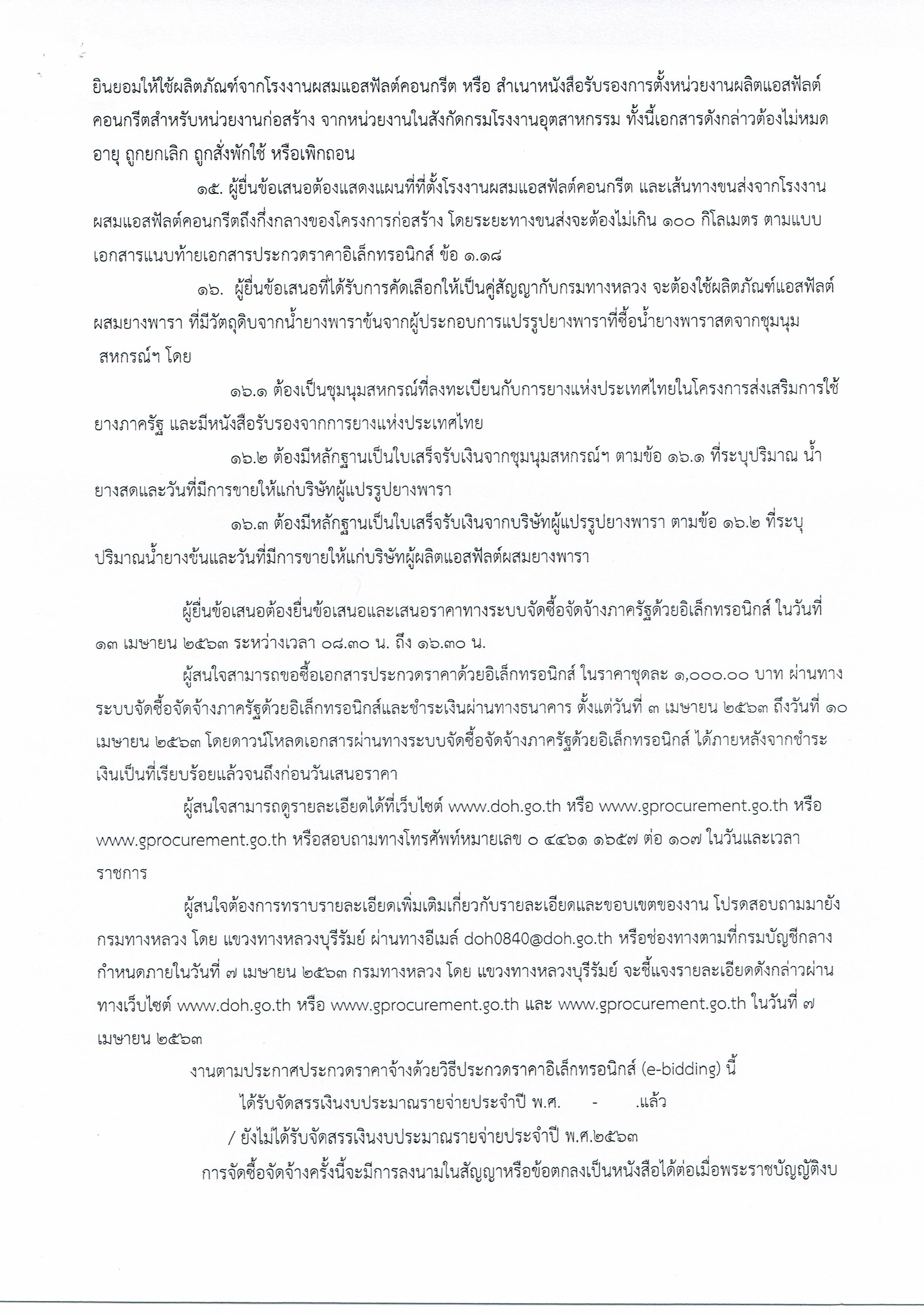 ประกวดราคาจ้างก่อสร้างกิจกรรมก่อสร้าง ปรับปรุง สะพานและอาคารระบายน้ำ ทางหลวงหมายเลข ๒๒๒๖ ตอน หนองขมาร - สตึก ระหว่าง กม.๘๙+๓๕๐ - กม.๙๐+๖๒๕ ปริมาณงาน ๑ แห่ง ด้วยวิธีประกวด ราคาอิเล็กทรอนิกส์ (e-bidding)