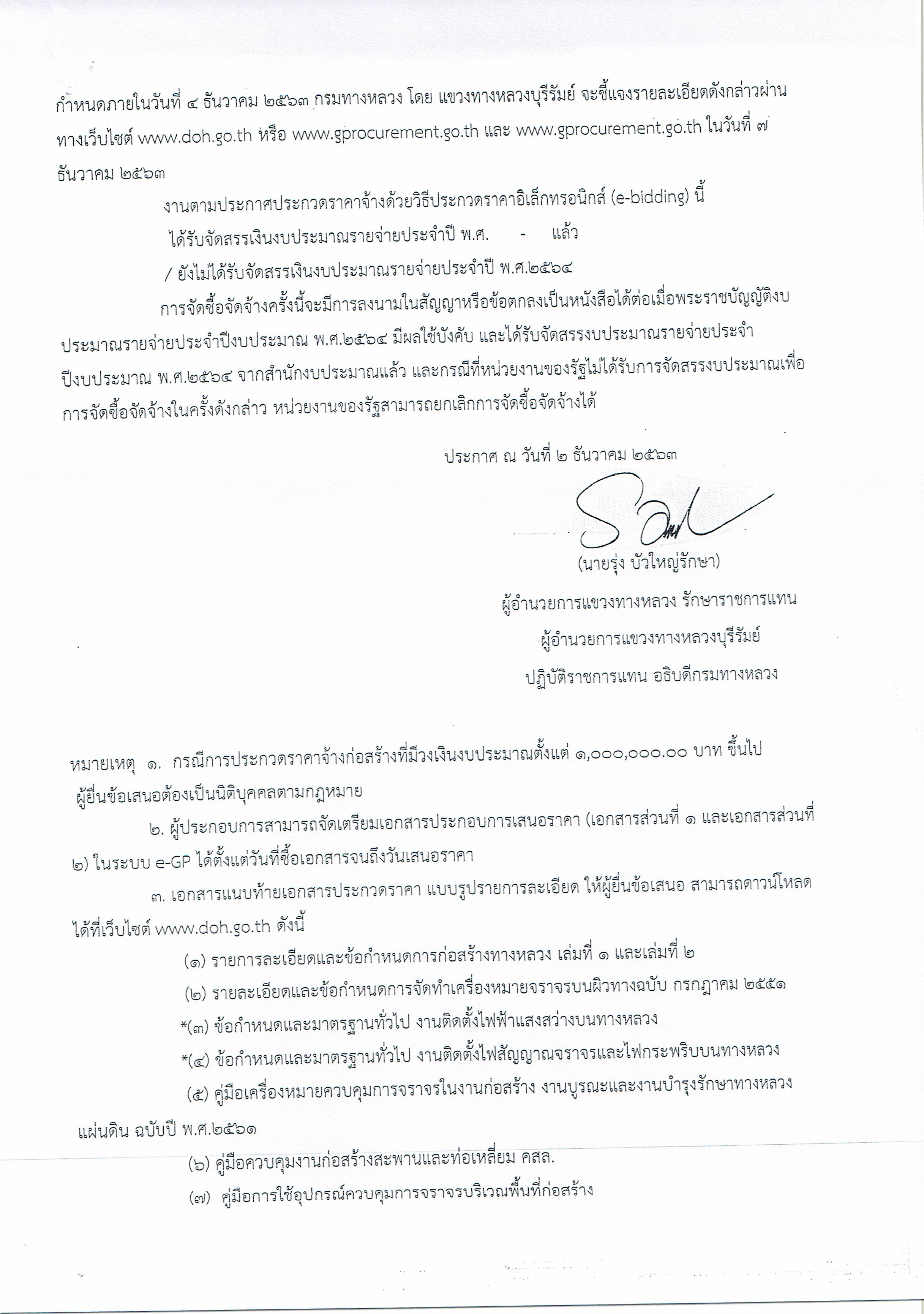 ประกวดราคาจ้างก่อสร้างงานไฟฟ้าแสงสว่าง ทางหลวงหมายเลข 24ตอนควบคุม 0301 ตอน หนองมัน - หนองกี่ ตอน 2ระหว่าง กม.89+069 - กม.91+729 ผลผลิต 1 แห่ง (ปริมาณงาน 122 ต้น) ด้วยวิธีประกวดราคาอิเล็กทรอนิกส์ (e-bdidding)
