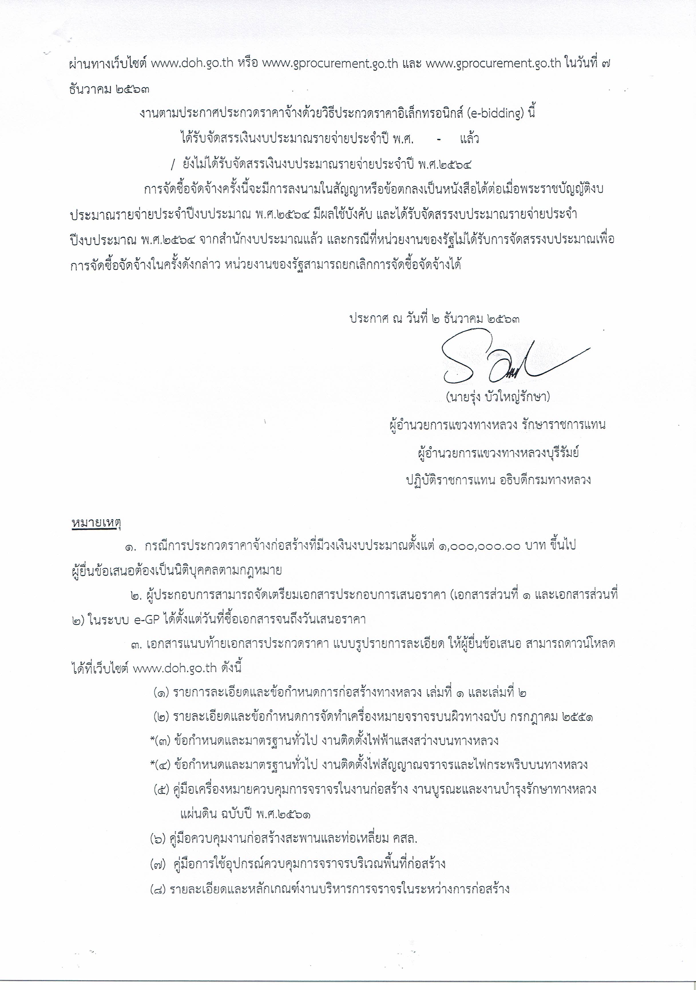 ประกวดราคาจ้างก่อสร้างงานไฟฟ้าแสงสว่าง ทางหลวงหมายเลข 226 ตอนควบคุม 0201 ตอน หนองกระทิง - ลำปลายมาศ ตอน 2 ระหว่าง กม.84+935 - กม.86+160 ผลผลิต 1 แห่ง (ปริมาณงาน 72 ต้น) ด้วยวิธีประกวดราคาอิเล็กทรอนิกส์ (e-bdidding)