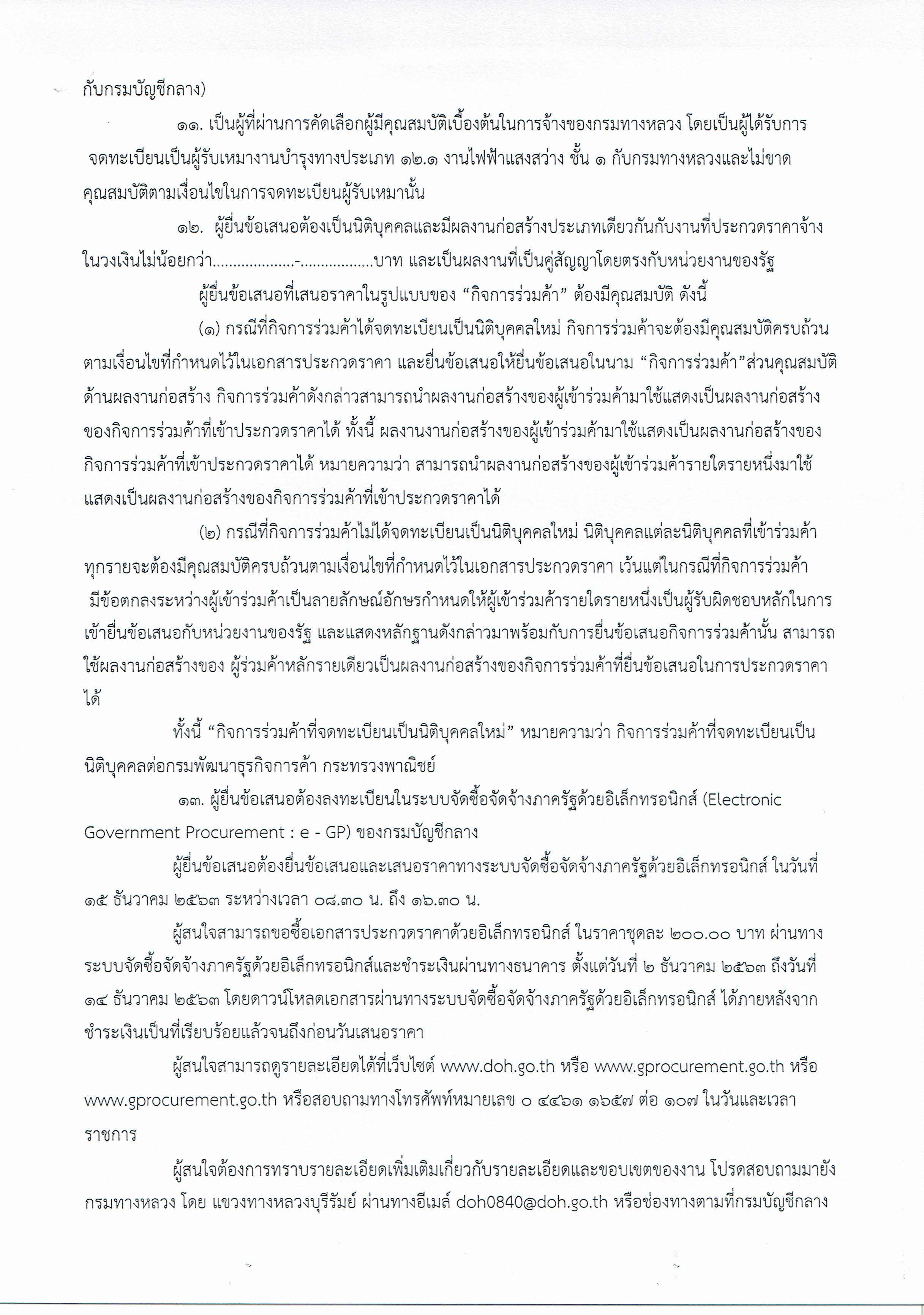 ประกวดราคาจ้างก่อสร้างงานไฟฟ้าแสงสว่าง ทางหลวงหมายเลข 2074 ตอนควบคุม 0102 ตอน คูเมือง - ลำน้ำมูล ตอน ๅ ระหว่าง กม.36+600 - กม.38+315 ผลผลิต 1 แห่ง (ปริมาณงาน 100 ต้น) ด้วยวิธีประกวดราคาอิเล็กทรอนิกส์ (e-bdidding)
