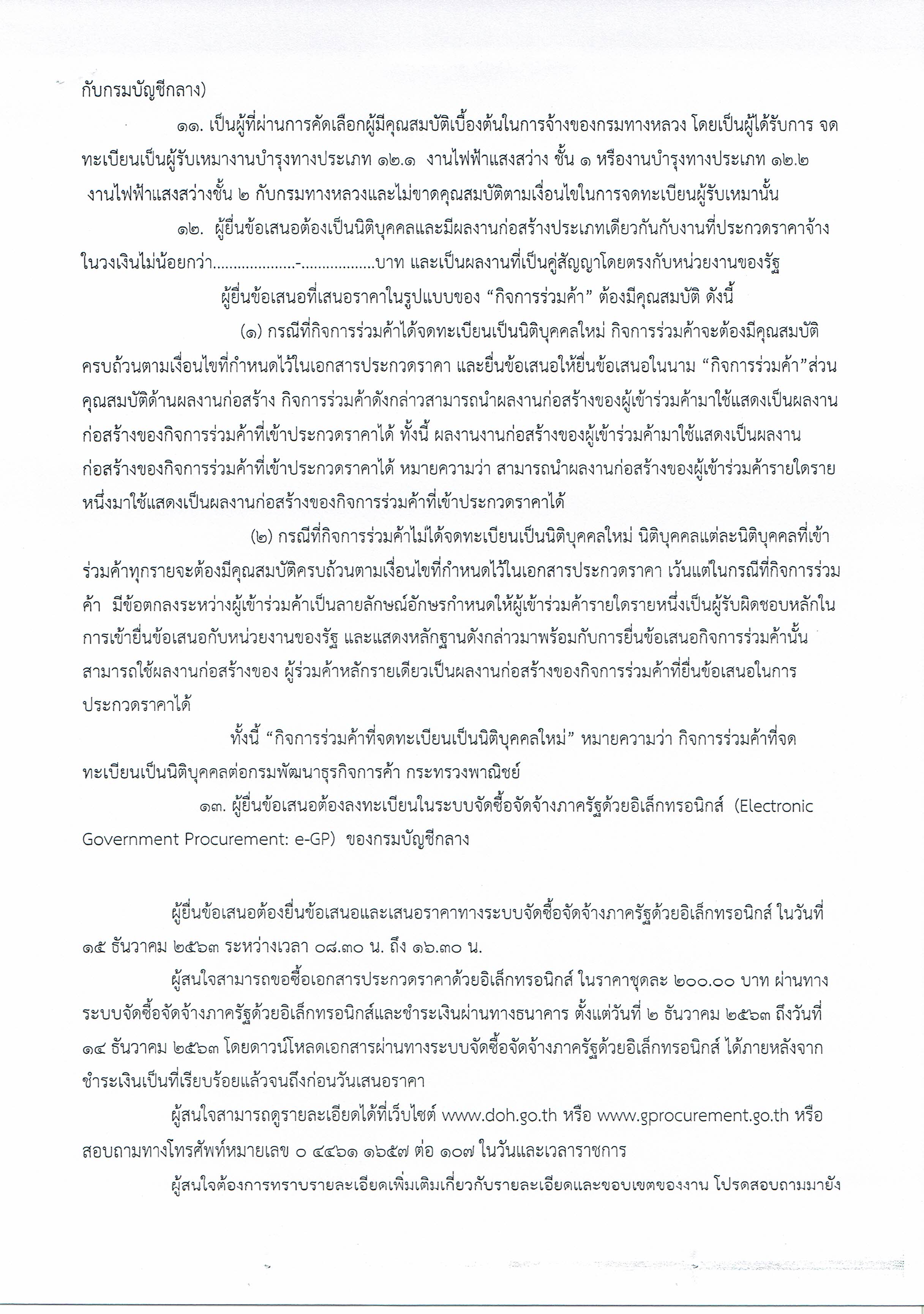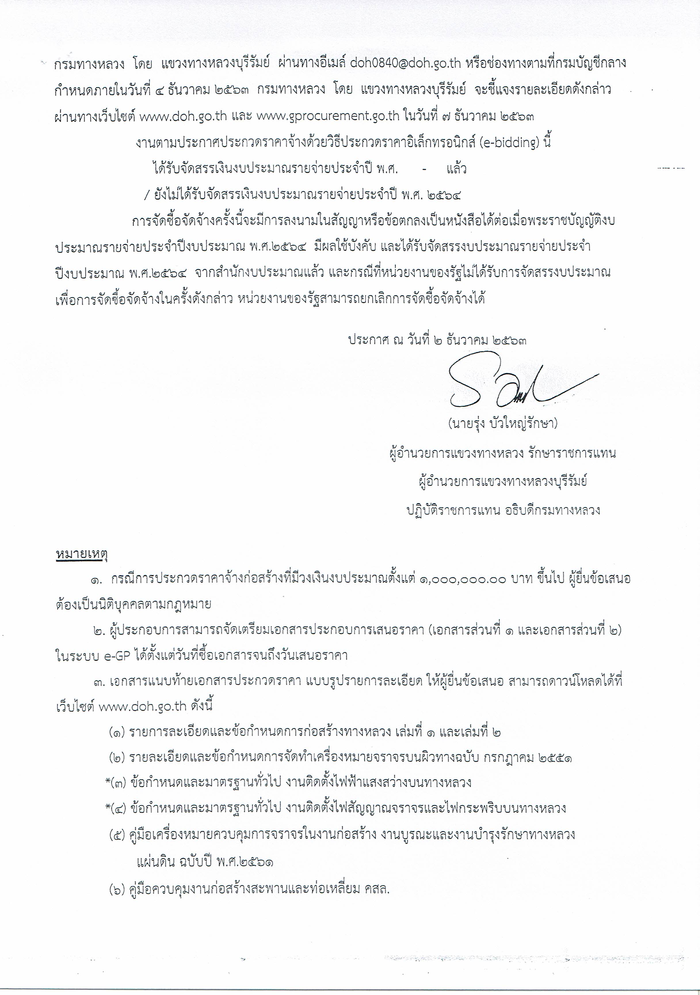 ประกวดราคาจ้างก่อสร้างงานไฟฟ้าแสงสว่าง ทางหลวงหมายเลข 24 ตอนควบคุม 0302 ตอน หนองกี่ - นางรอง ตอน 7 ระหว่าง กม.119+909 - กม.120+973 ผลผลิต 1 แห่ง (ปริมาณงาน 49 ต้น) ด้วยวิธีประกวดราคาอิเล็กทรอนิกส์ (e-bdidding)