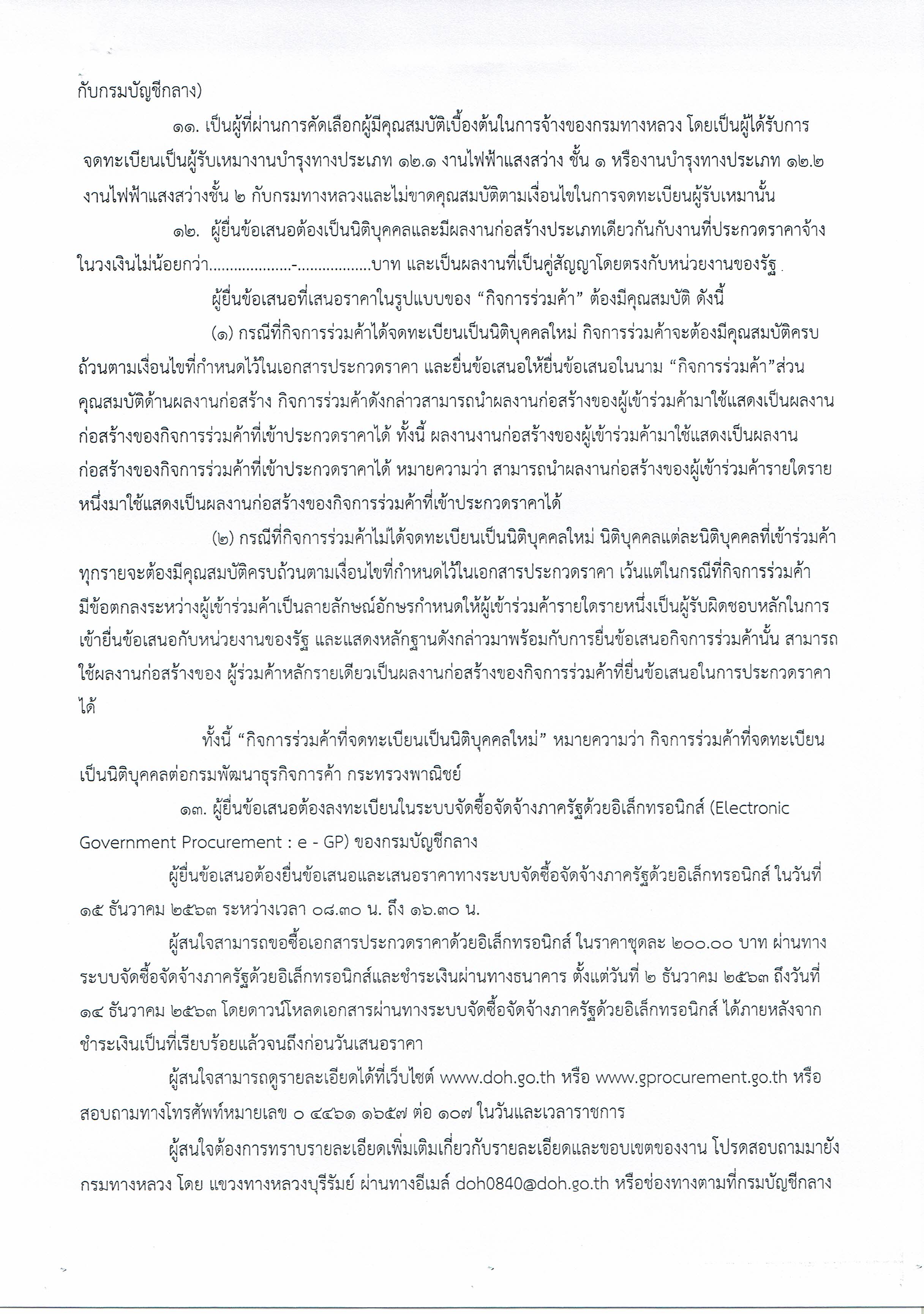 ประกวดราคาจ้างก่อสร้างงานไฟฟ้าแสงสว่าง ทางหลวงหมายเลข 2226 ตอนควบคุม 0202 ตอน หนองขมาร - สตึก ตอน 3 ระหว่าง กม.84+825 - กม.86+505 ผลผลิต 1 แห่ง (ปริมาณงาน 49 ต้น) ด้วยวิธีประกวดราคาอิเล็กทรอนิกส์ (e-bdidding)
