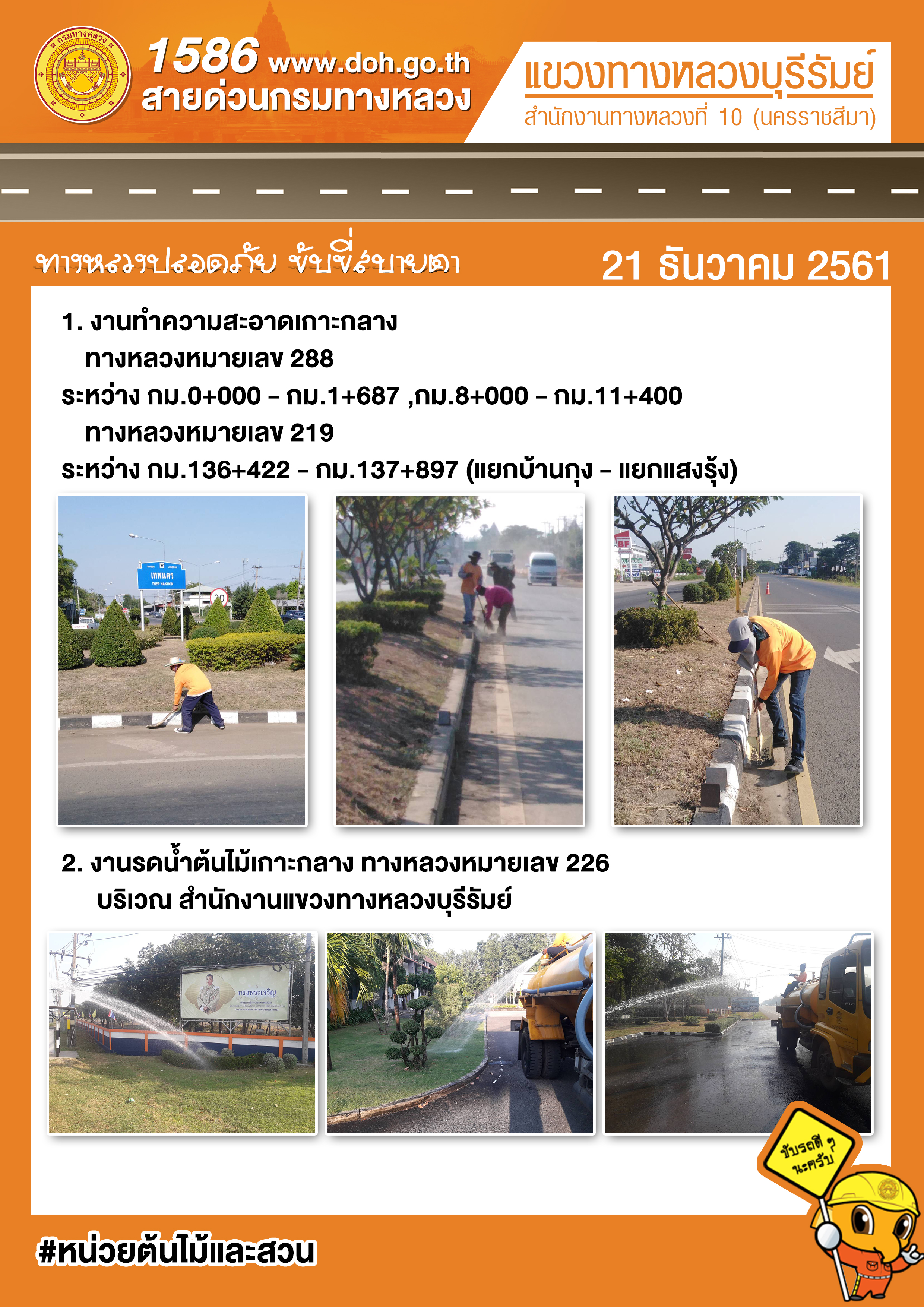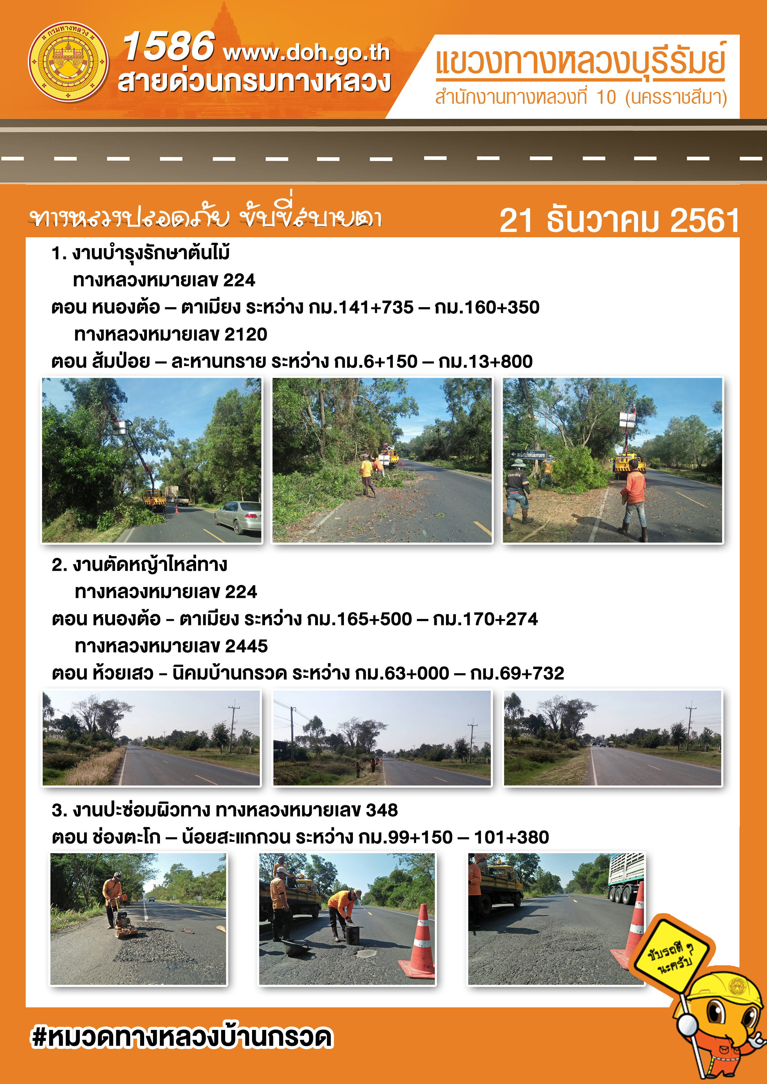 การปฏิบัติงาน ในสายทางความรับผิดชอบของหน่วยงานในสังกัดแขวงทางหลวงบุรีรัมย์