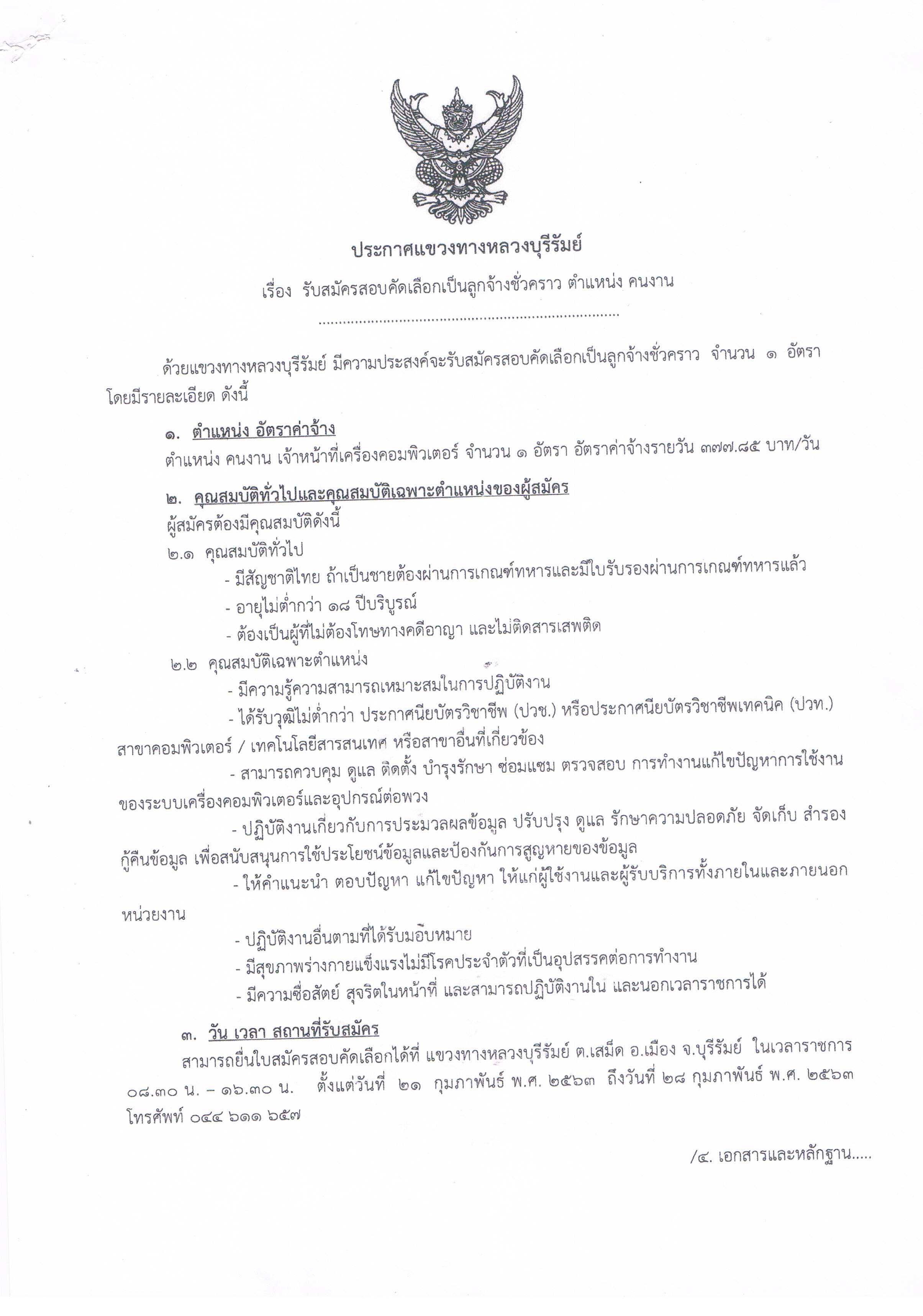 ประกาศรับสมัครสอบคัดเลือกเป็นลูกจ้างชั่วคราว ตำแหน่ง คนงาน (เจ้าหน้าที่เครื่องคอมพิวเตอร์ จำนวน 1 อัตรา)