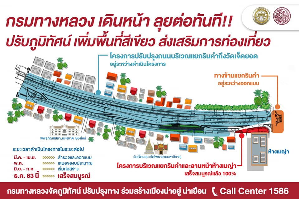 กรมทางหลวงเผยก่อสร้างลานสาธารณะหน้าห้างเมญ่า จ.เชียงใหม่ เสร็จสมบูรณ์แล้ว