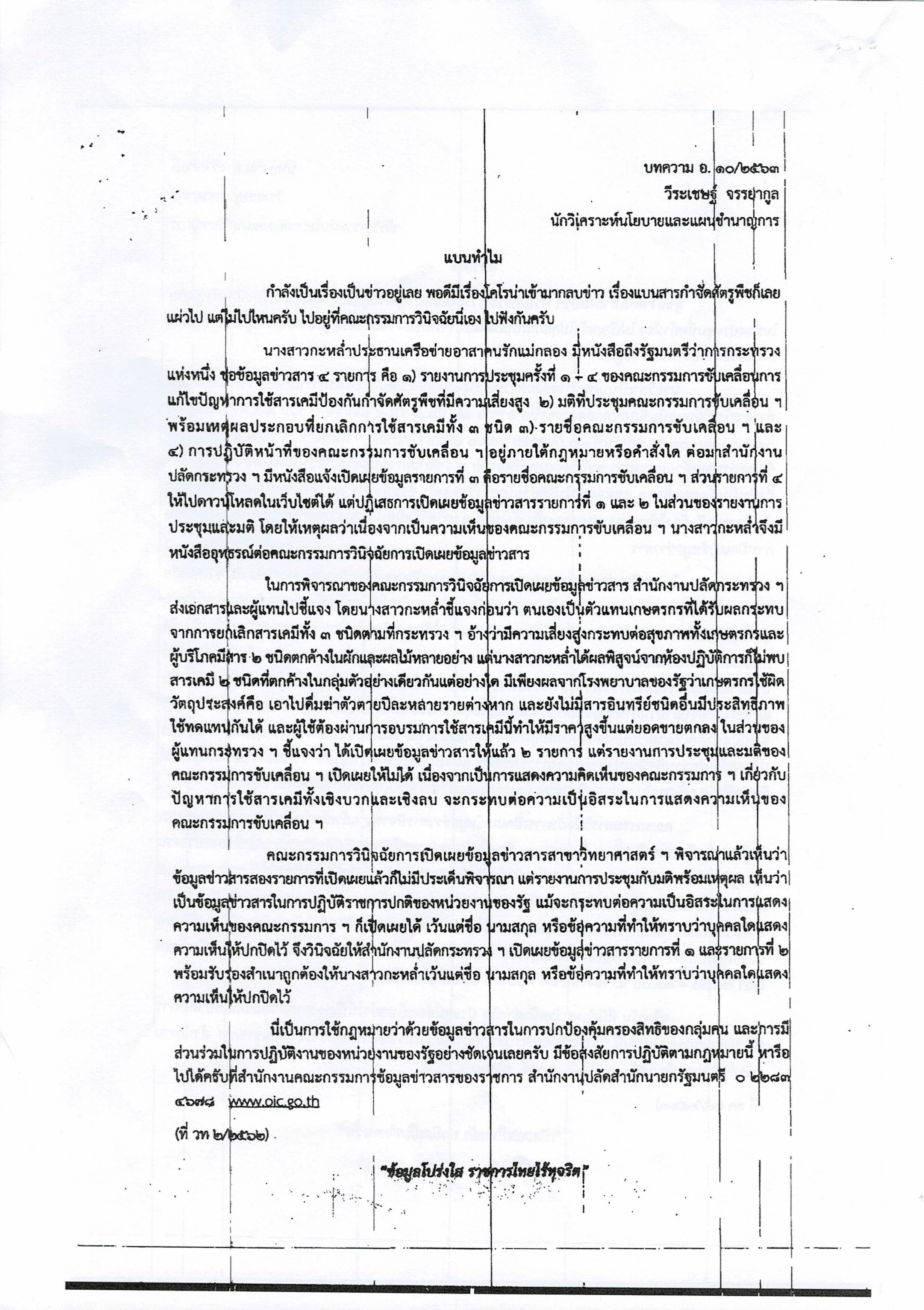 บทความเกี่ยวกับ พ.ร.บ.ข้อมูลข่าวสารของราชการ พ.ศ.2540