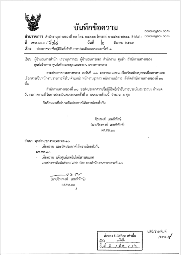 ประกาศรายชื่อผู้มีสิทธิ์เข้ารับการประเมินสมรรถนะครั้งที่ 1