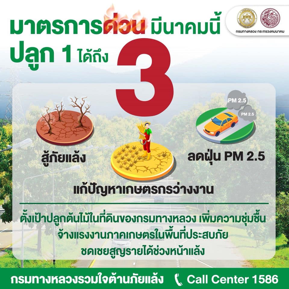 กรมทางหลวงเตรียมโครงการปลูกต้นไม้มีค่า เริ่มดำเนินการเดือนมีนาคมนี้ ปลูก 1 ได้ถึง 3