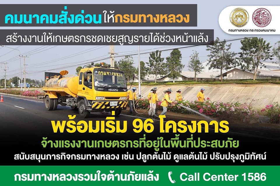 คมนาคมมอบนโยบายด่วน สั่งกรมทางหลวงจ้างงานภาคเกษตรกรทั่วประเทศ ชดเชยสูญรายได้เพาะปลูกพืชหน้าแล้ง