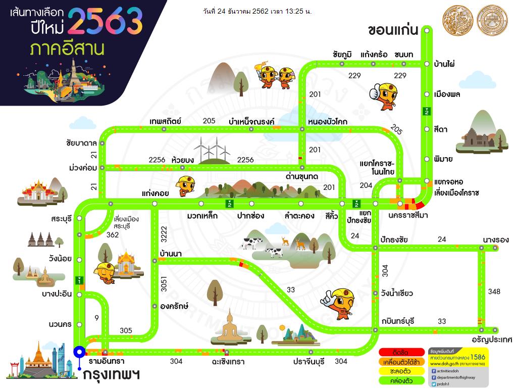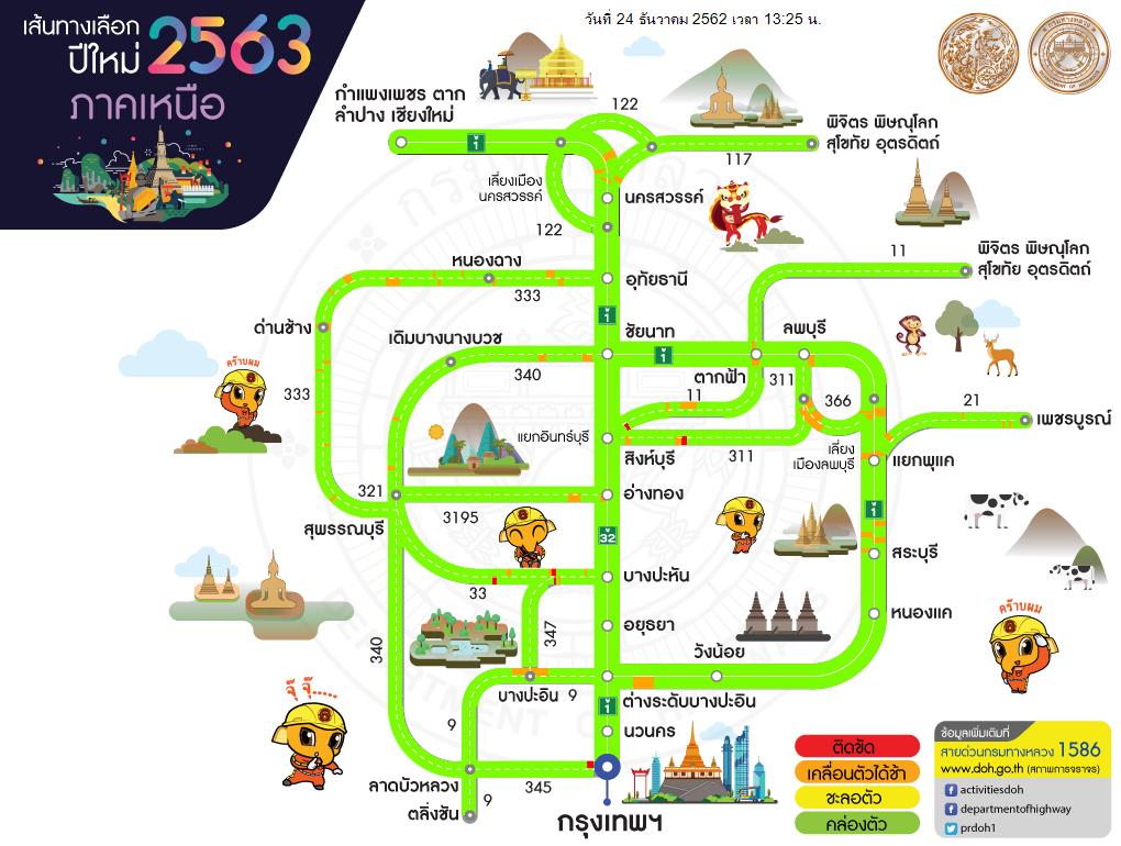 กรมทางหลวง แนะนำเส้นทางเลือกจากกรุงเทพฯสู่ภูมิภาคต่างๆ ช่วงเทศกาลปีใหม่ 2563 เพื่อให้ผู้ใช้ทางได้รับความสะดวกรวดเร็วในการเดินทาง สอบถามโทร 1586