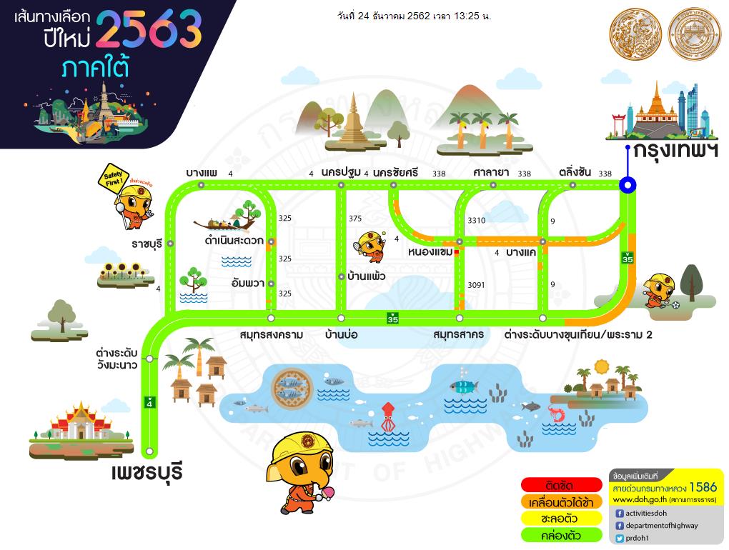 นายสราวุธ ทรงศิวิไล อธิบดีกรมทางหลวง เปิดเผยว่า ในช่วงเทศกาลปีใหม่ 2563 นี้ คาดว่าจะมีประชาชนเดินทางกลับภูมิลำเนาและท่องเที่ยวเป็นจำนวนมาก ซึ่งกระทรวงคมนาคมโดยนายศักดิ์สยาม ชิดชอบ รัฐมนตรีว่าการกระทรวงคมนาคม ได้มีนโยบาย“ใส่ใจกำลังสาม เดินทางอุ่นใจ ปลอดภัยตลอดปีใหม่” เพื่อเป็นการอำนวยความสะดวกแก่ผู้เดินทางในช่วงเทศกาลดังกล่าว กรมทางหลวงจึงแนะนำเส้นทางเลือกบนทางหลวงสายหลักและสายรอง อีกทั้ง ยังได้จัดทำ QR Code Scan สำหรับติดตามสภาพจราจรได้แบบเรียลไทม์ โดยสามารถสแกน QR Code ได้ที่หน้าเว็บไซต์กรมทางหลวง www.doh.go.th ซึ่งจะช่วยให้ประชาชนวางแผนการเดินทางล่วงหน้าได้เป็นอย่างดี