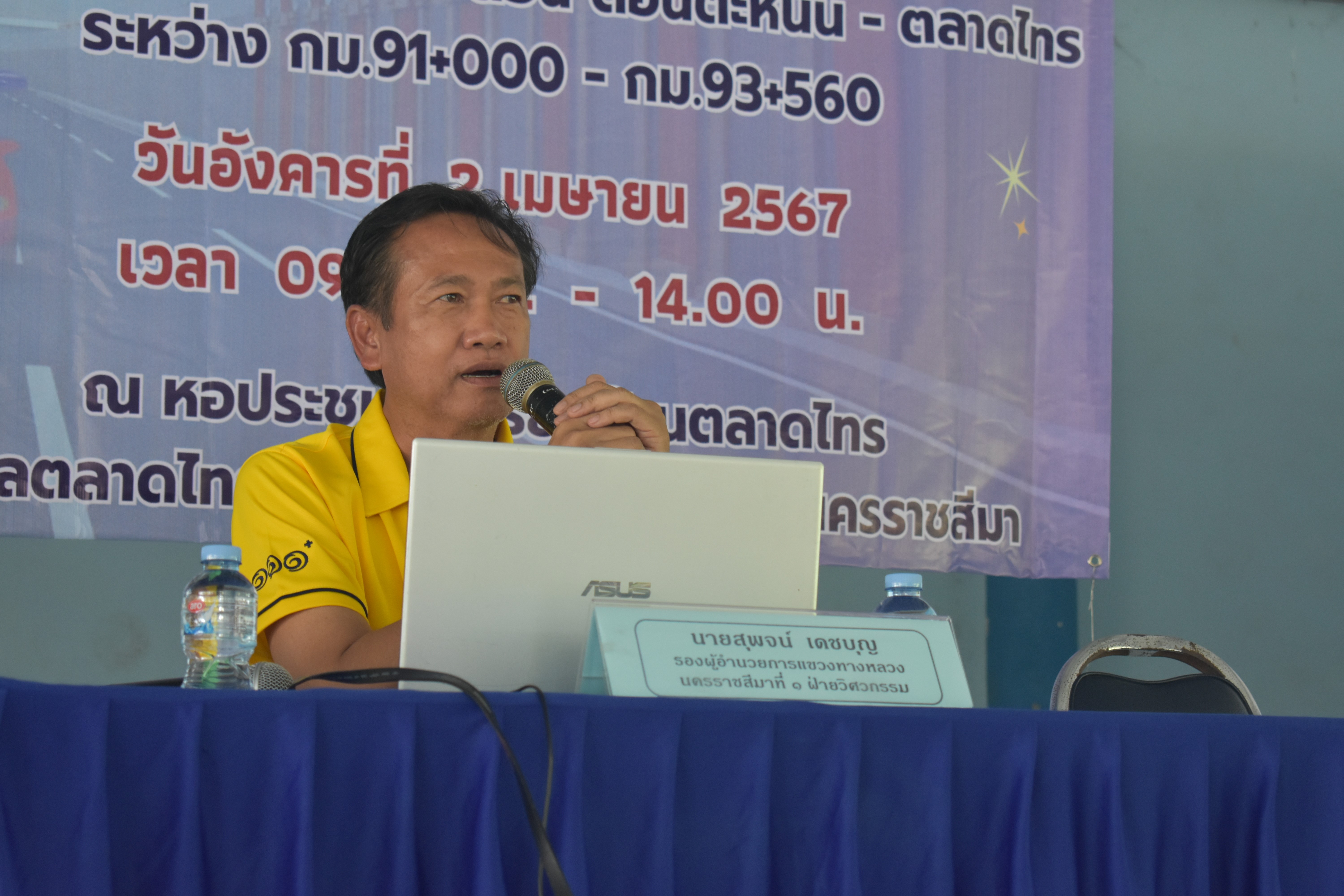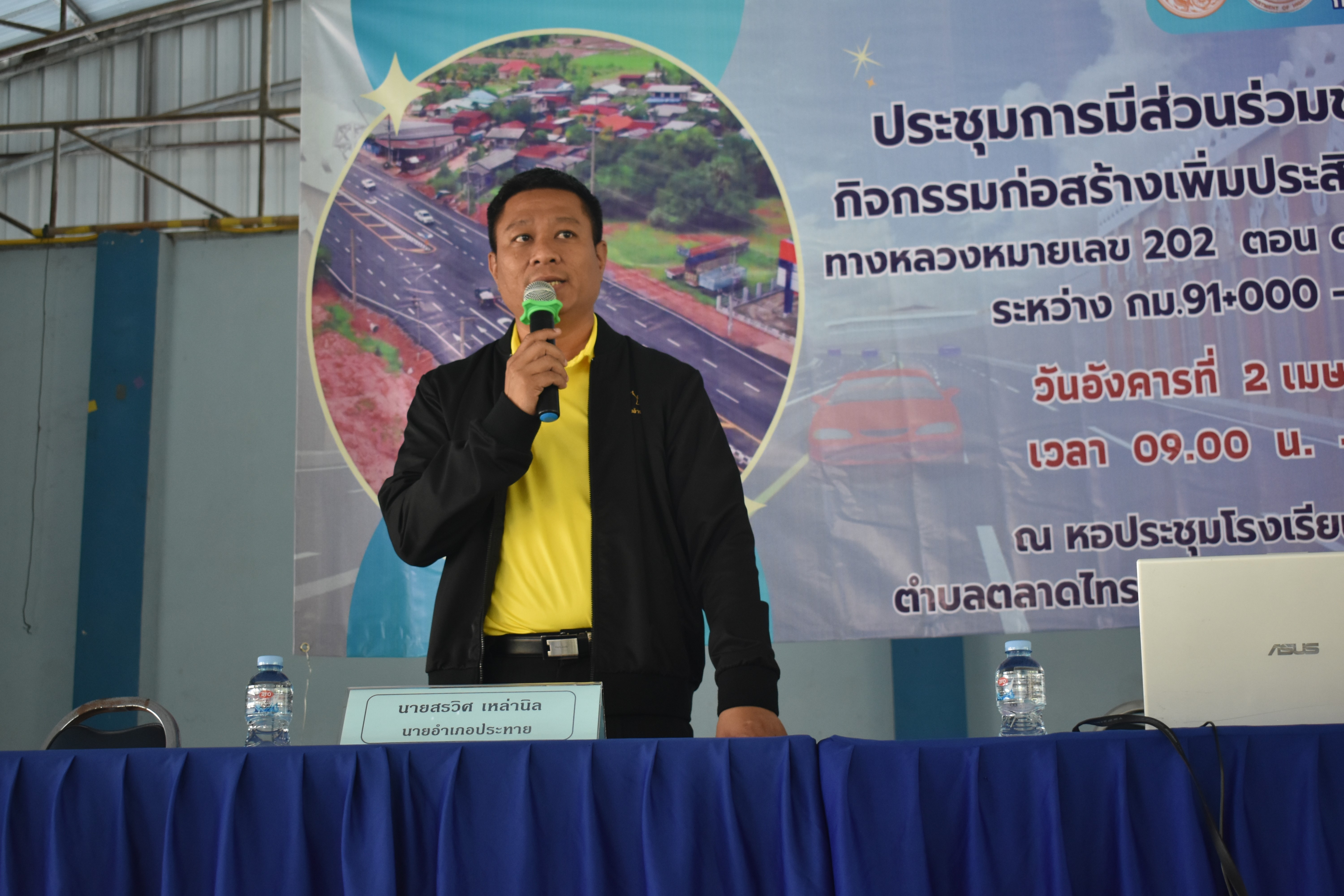 แขวงทางหลวงนครราชสีมาที่ 1 ได้ดำเนินการจัดประชุมมีส่วนร่วมรับฟังความคิดเห็นของประชาชน กิจกรรมก่อสร้างเพิ่มประสิทธิภาพทางหลวง บนทางหลวงหมายเลข 202 ตอน ดอนตะหนิน - ตลาดไทร ระหว่าง กม.91+000 - กม.93+560 ณ หอประชุมโรงเรียนบ้านตลาดไทร ตำบลตลาดไทร อำเภอประทาย จังหวัดนครราชสีมา โดยมี นายสรวิศ เหล่านิล นายอำเภอประทาย ให้เกียรติเป็นประธานฯ มติที่ประชุมเห็นด้วยและได้รับความร่วมมือจากทุกภาคส่วนเป็นอย่างดี