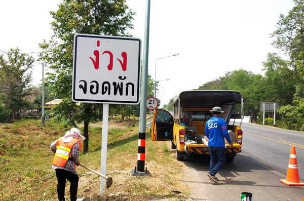 มิติที่ 2 การรณรงค์ติดตั้งป้ายลดอุบัติเหตุจากการหลับใน โดยได้ติดตั้งป้ายรณรงค์ “ง่วงจอดพัก” เป็นระยะ และตั้งจุดร่วมกับเจ้าหน้าที่ตำรวจ