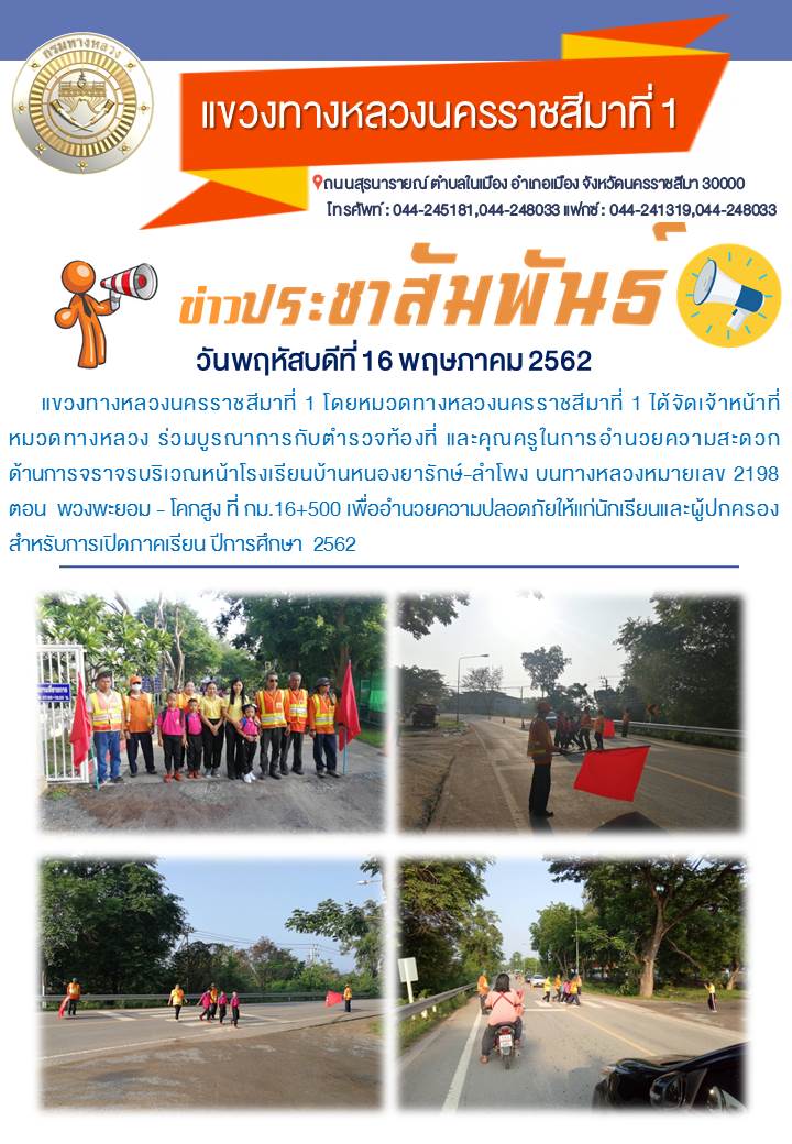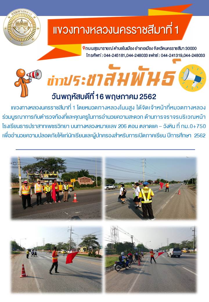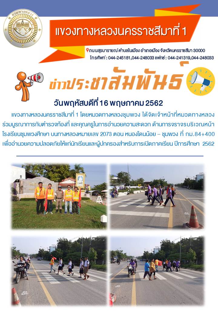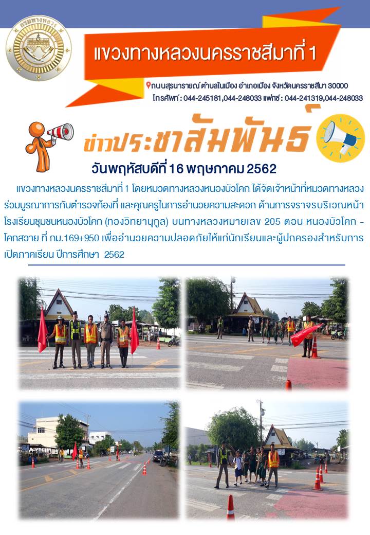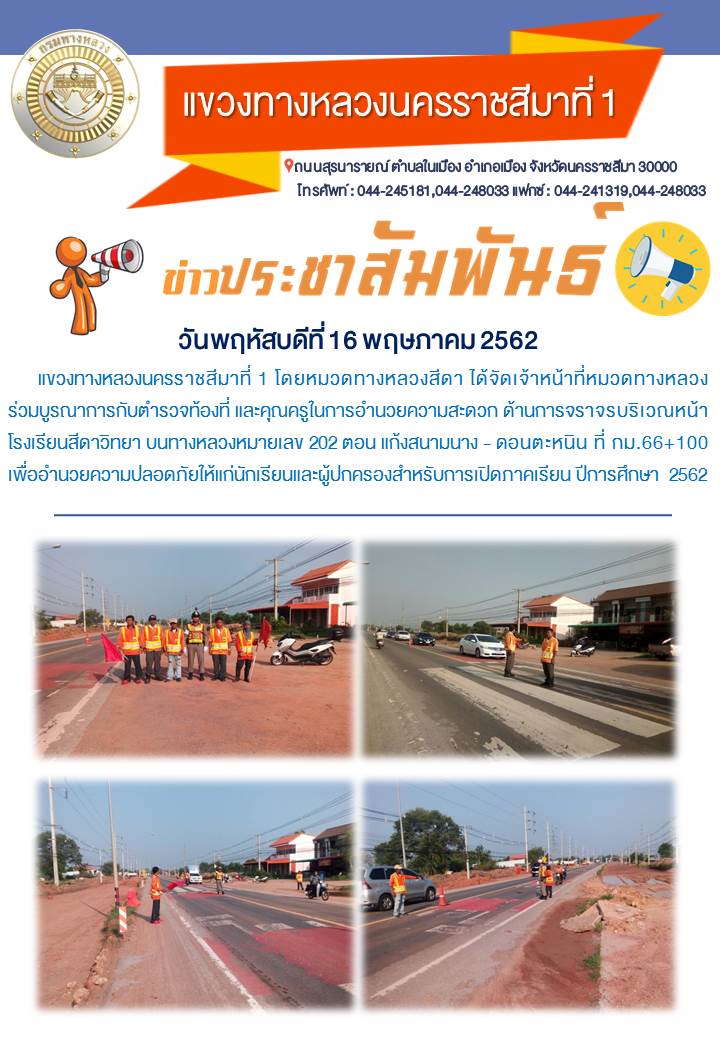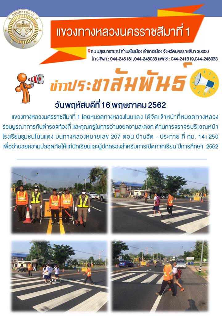 แขวงทางหลวงนครราชสีมาที่ 1 โดยหมวดทางหลวงในสังกัดได้จัดเจ้าหน้าที่ร่วมบูรณาการกับตำรวจท้องที่และคุณครู