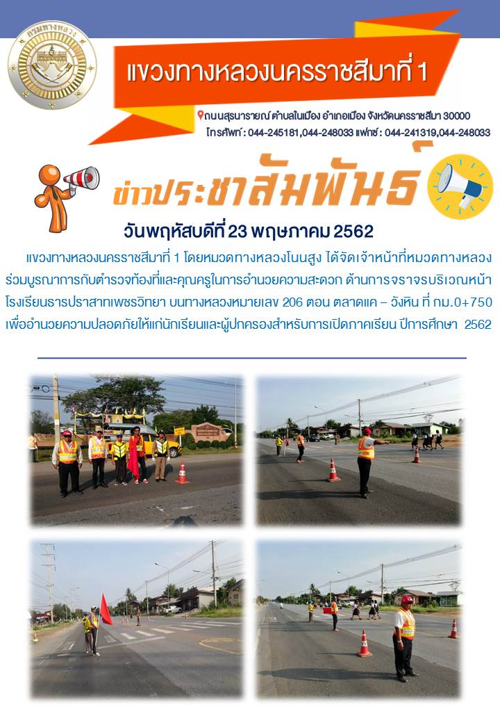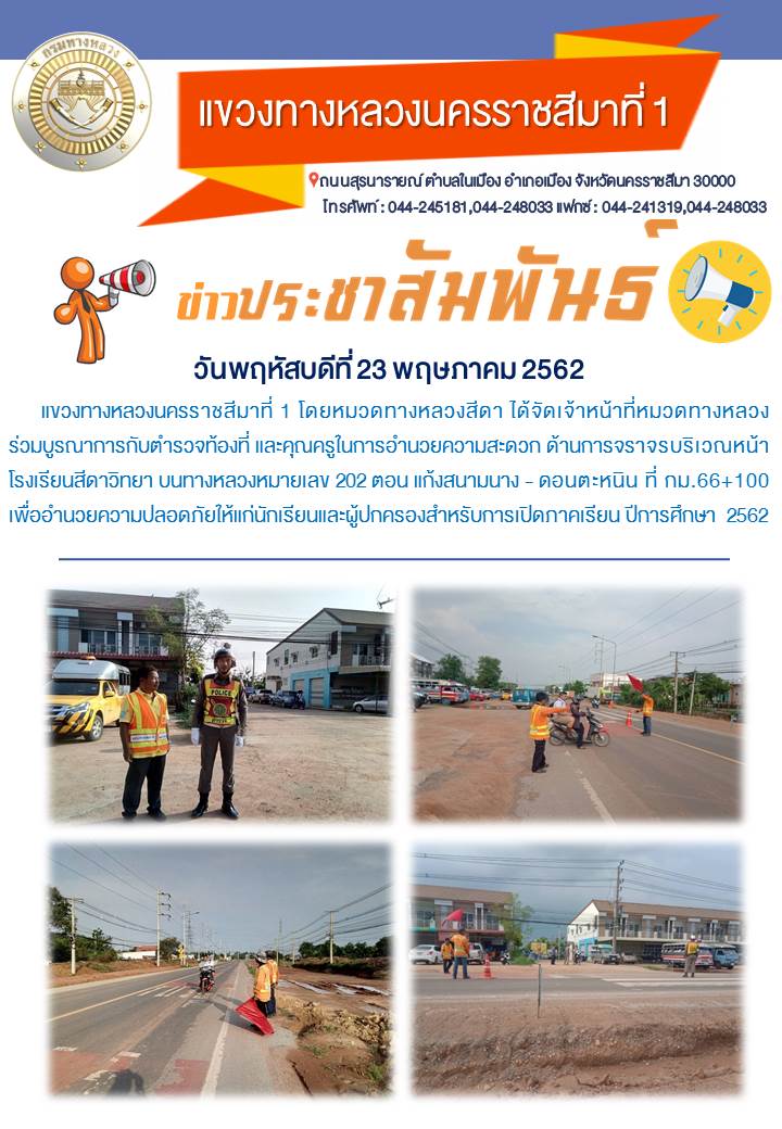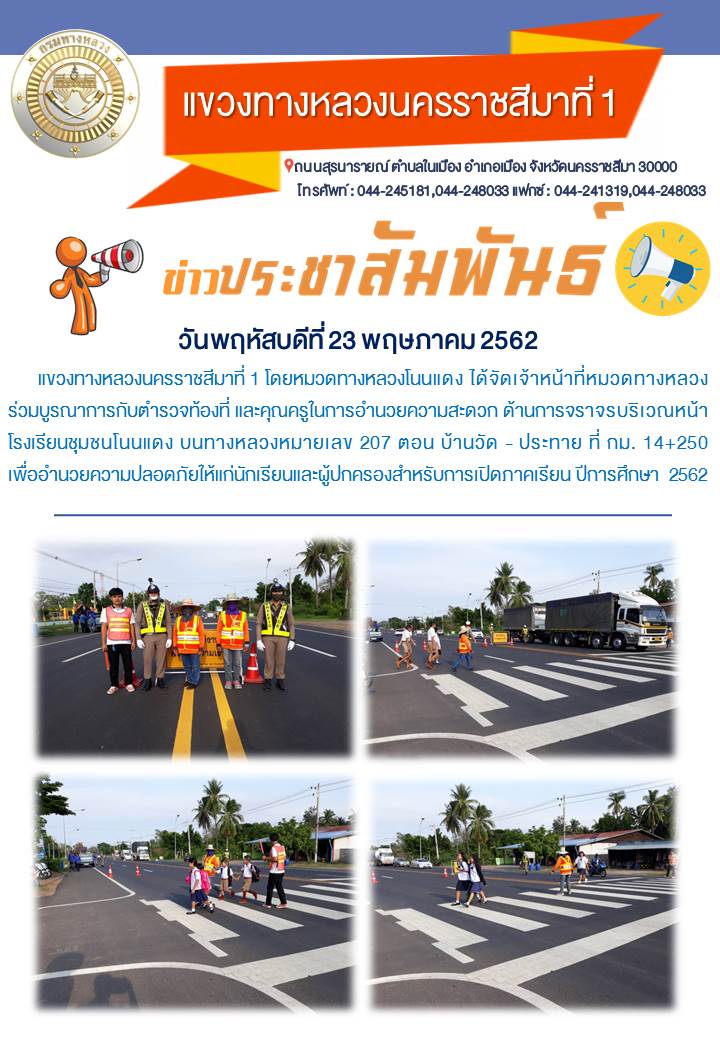 แขวงทางหลวงนครราชสีมาที่ 1 โดยหมวดทางหลวงในสังกัดได้จัดเจ้าหน้าที่ร่วมบูรณาการกับตำรวจท้องที่ และคุณครู