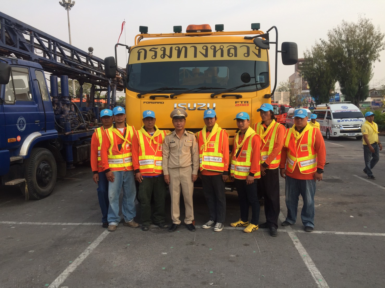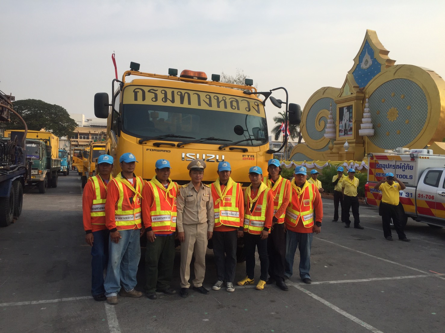 นายเอกราช ปิดตะคุ หัวหน้าหมวดทางหลวงโนนไทย พร้อมด้วยเจ้าหน้าที่และรถน้ำหมวดทางหลวงโนนไทย